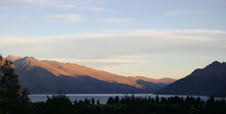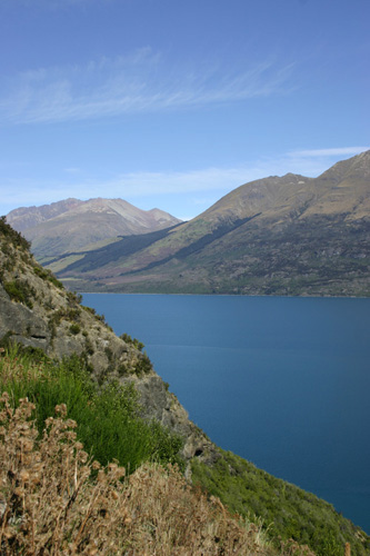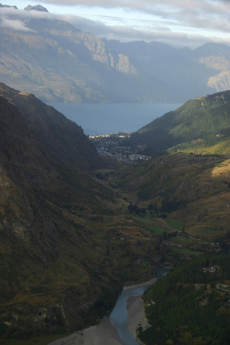 Once in Queenstown, one can find outstanding scenery in all directions. The area is dominated by the Remarkables Range and Lake Wakatipu. The lake is almost fifty miles long and the second largest of the glacial lakes on the South Island. (Click on the pictures to enlarge.)