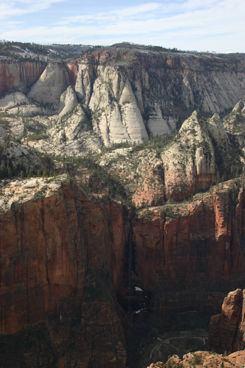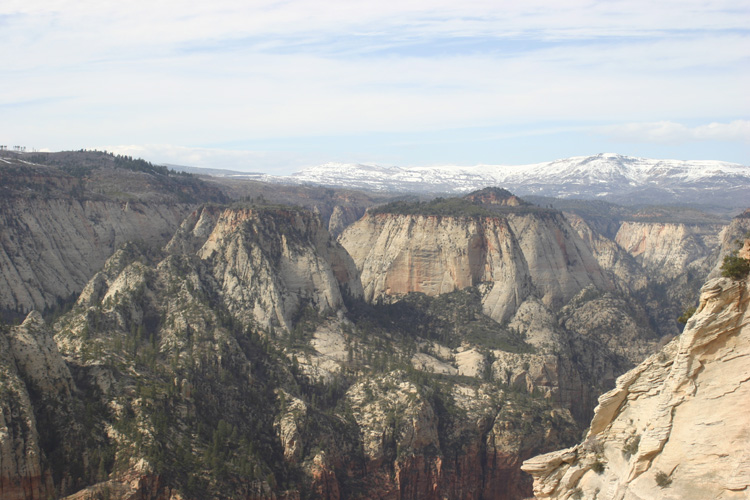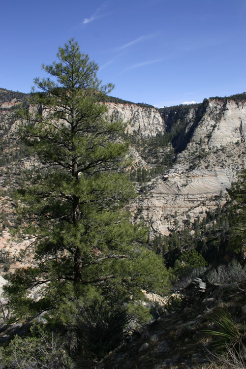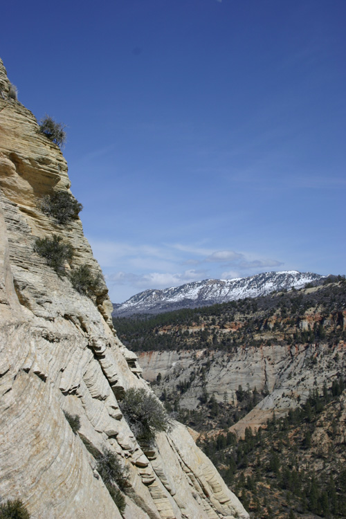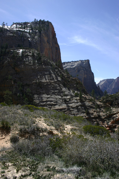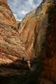 The hike to Observation Point is one of the most stunning and challenging hikes in Zion National Park. The 8 mile trail gains 2148 feet in elevation providing marvelous views of Zion Canyon throughout the hike. The trail also passes through Echo Canyon, a beautiful slot canyon aurrounded by towering stone walls and the massive Cable Mountain. (Click on the pictures to enlarge.)